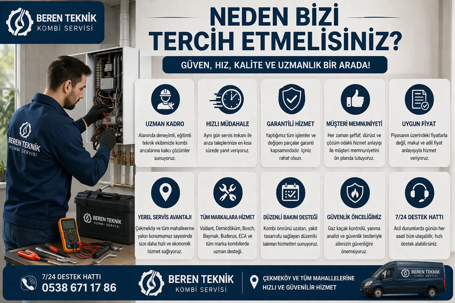 Bu yüzden Çekmeköy kombi tamiri, Çekmeköy kombi bakımı ve Çekmeköy kombi arıza tespiti gibi hizmetlerin uzman ekipler tarafından yürütülmesi önerilmektedir.