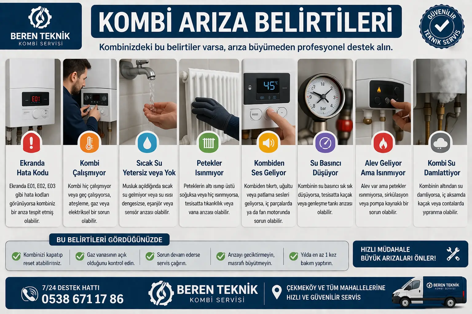 Kullanıcıların servis çağırmadan önce fark edebileceği bazı temel belirtiler bulunmaktadır. Bu belirtiler dikkate alındığında arızanın büyümeden tespit edilmesi kolaylaşmaktadır. En sık görülen belirtiler şunlardır: