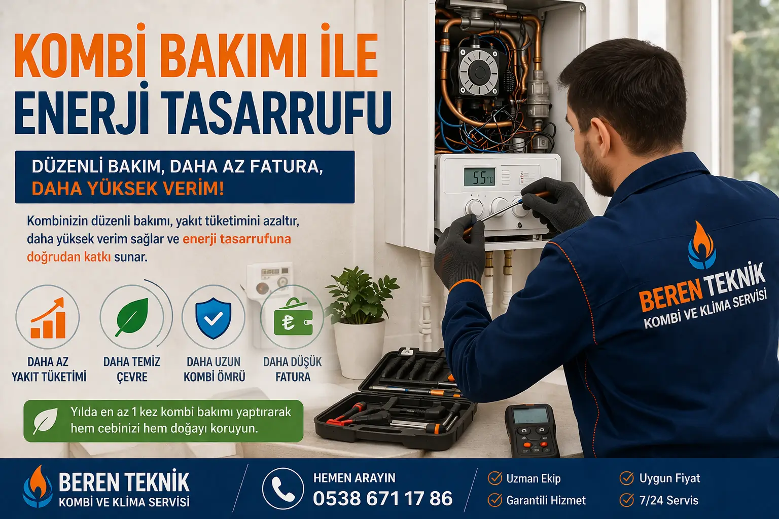 Kombi bakımı yalnızca cihazın sağlıklı çalışmasını sağlamakla kalmaz aynı zamanda enerji tasarrufu açısından da önemli bir avantaj sağlamaktadır. Özellikle düzenli bakım yapılan kombilerin daha az doğalgaz tükettiği bilinmektedir.
