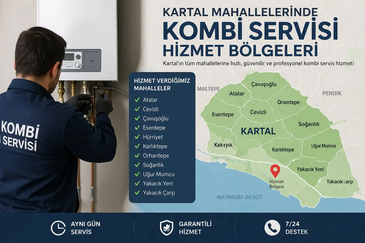Kartal Mahallelerinde Kombi Servisi Hizmet Bölgeleri