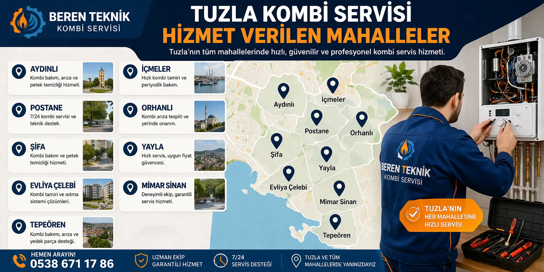 Tuzla kombi servisi hangi mahallelere hizmet verir?